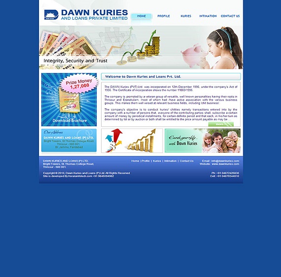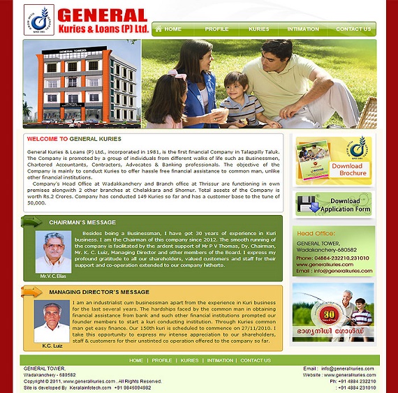 General Kuries & Loans (P) Ltd., incorporated in 1981, is the first financial Company in Talappilly Taluk. The Company is promoted by a group of individuals from different walks of life such as Businessmen, Chartered Accountants, Contractors, Advocates & Banking professionals. The objective of the Company is mainly to conduct Kuries to offer hassle free financial assistance to common man, unlike other financial institutions.