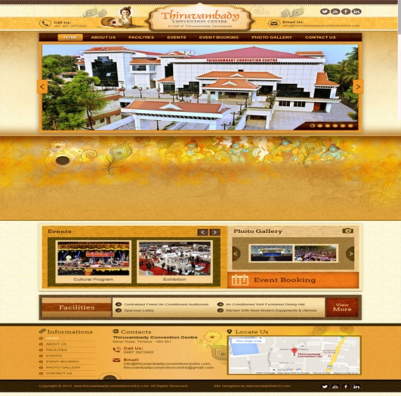 The Thiruvambady Devaswom the administrative set up of the temple related properties and establishments, forms an inevitable factor of the mainstream in the social life of Thrissur. The Devaswom has dedicated to the public for their use an imposing convention centre on the marar road 125meters from the Swaraj Round in the heart of city.